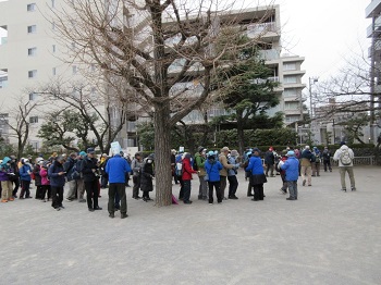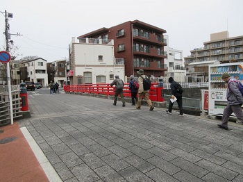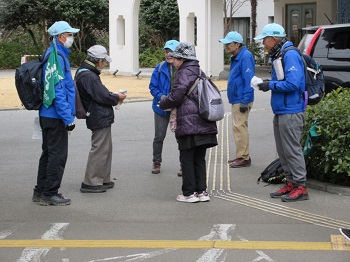 | 集合場所は藤沢駅北口近くの若尾山公園。立春を過ぎても、天気予報が今シーズン最寒というので、防寒着を重ねて参加した。公園では風が冷たく、雪が舞っている。土曜日で他に人の姿もない。 そんな中でも受付が始まる頃の参加者は150人を超えていた。 9時 受付開始。街なかから境川沿いに出る。流れの砂州にカワウが100羽ほど休んでいる。この寒気の中で、彼らはじっとしてなにを思っているのか。「奥田堰碑」に出る。奥田堰は大正〜昭和にかけて利用された農業用取水堰の跡で、いまは小さな橋が架かっている。舩玉神社を過ぎると藤沢橋交差点に出た。現在の藤沢橋は1992年の竣工である。 ふじさわ宿交流館(高札場)の前から遊行寺橋(大鋸橋)を渡って藤沢宿の通りにでる。これが昔の東海道だ。箱根駅伝も現在のルートができる前は、遊行寺坂を下って、このルートで宿場へ抜けていた。 本町に入り常光寺(七福神・福禄寿)から済美館へ。案内文によれば昔の済美館は昭和17年、武道場として篤志家から藤沢市に建設・寄贈され、昭和62年までは主に市民の武道錬成場として利用された。FWA相談役の平野さんは済美館と同じ町内の人だが少年時代はここに通われたか・・平野さんは合気道をしていたのではなかったか?済美館の当時のことを書いてほしい。 荘厳寺などに寄り白旗へ向かう。白旗神社を石段下から拝礼して御殿辺公園へ。白旗川に沿う神社のフェンスに義経を描いた楽しい大絵馬が並んでいる。御殿辺公園がチェックポイントで、ロング・ショートコースの分岐点。スタッフにはチョークが良く描けていたよ、と話した。スタッフはみんな優しくて私にショートを勧めてくれたのでショートに決める!寒空で風が冷たい御殿辺公園の広場には人の姿は全くなかった。リュックを背負って歩いているウォーカーだけだ! 御殿辺公園から1qあまり、田園地域を北へ向かって歩く。イチゴの旗が立つ大きなハウスが目につく。雪は止んだが時折吹く冷たい風がかなわない。それでもじっとして立哨しているスタッフのことを思うと贅沢言っていられない。ゆるい坂を上ると立石神社に出た。だらだら坂がさらに続き、善行に近くなったことを知った。467号線に出て、体育センター前の信号を渡ると陸上競技場の前にあるグリーンハウス前がゴールである。10:40に到着した。 体育センター敷地内にある「グリーンハウス」は爽やかな洋館である。善行雑学大学の寄贈による案内板がある。この建物は昭和7年(1932年)開場のゴルフ場「旧藤澤カントリー倶楽部・クラブハウス」で、アントニン レーモンドが設計したスペイン風の建物である。20年ほど前か、善行雑学大学を主宰していた故宮田英夫さんに案内されて、内部を観たときはまだまだ荒廃していて説明を聞くだけだった。当時から宮田さんらの神奈川県への運動が実って、一時は建物の取壊しの話があったが、再整備され保存・改修されたものである。 (川澄 武雄) |