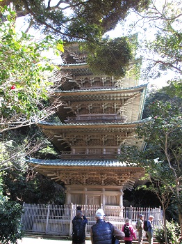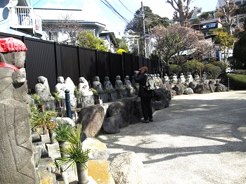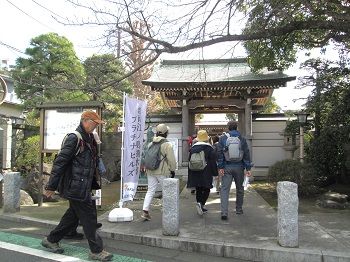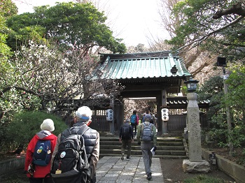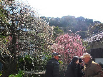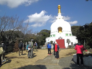 | 天気は上々、少しずつ春の足音が近づいている今日のウォーキングは快適に楽しめそう。 各地から河津桜満開の報せ、梅の開花情報も届き始めている。 ウォークメイトは例によって15~20人のグループの班構成で順次出発。先ずは境川に沿った江の島道を、江の島目指して南下する。途中立ち寄りの新林公園と常立寺では紅梅・白梅が見頃でゆっくり観梅を楽しんだ。久しぶりの岩屋不動尊では岩屋の中の不動明王を参拝、厳粛な雰囲気に包まれた。 密蔵寺では愛染かつらの木・四国霊場に因んだ26体の弘法大師石像などを拝観し、更に龍口寺ではめったに行かない裏山のてっぺんまで登り仏舎利塔を参拝。残念ながら西方の箱根の山並みの上に富士山が見えるはずであったが生憎西の空は雲の中、残念でした。帰りは山の中腹にある五重塔を真下から見上げてその迫力に圧倒された。 片瀬海岸に出ると、片瀬漁港突堤まで足を運び目前に見える江の島と広い太平洋の景観を独り占め。浜に戻り西へ長―い遊歩道をサーフビレッジまで海を眺めながらゴール。波は静かであったが沢山のサーファーと浜ではビーチバレーを楽しんでいる若者達がいた。 (阪本 茂義) |