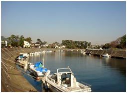 なぜ、片瀬湊はこの地点にあったのだろうか。現在の川の流れ、水量を見ると考えられない。勿論、当時は上流にダムなどある訳でなく水量も豊かであったろうが。川岸を歩くと新屋敷橋辺りまで両岸にプレジャーボートの不法係留が見られる。これは舟が容易にこの地点まで遡航できるということである。 つまり片瀬川の河面の高さが海面の高さと同じになる。流速や水位が潮の干満の影響を受けて変動する川、人文地理でいう感潮河川であるいうことである。その変動区間は現在ボラが飛び上がるのが見られる奥田橋付近まであろう。 |