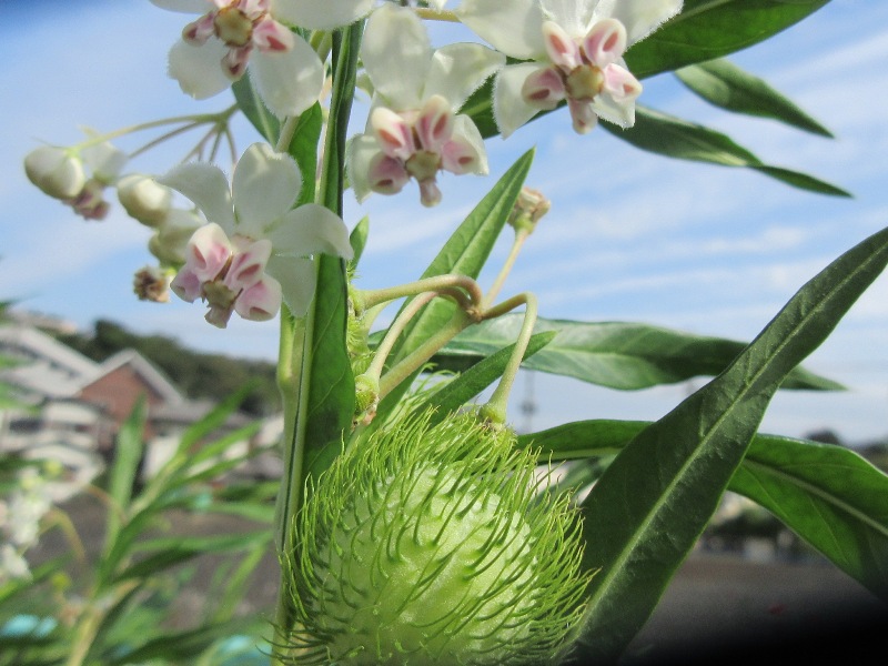 昨年弾けた風船唐綿の実から2代目が生まれ育ち、