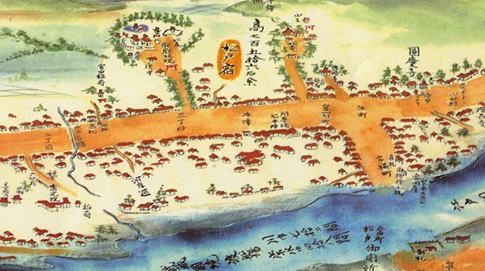 「新宿(にいじゅく)」 千住と松戸の間にある宿場で、本陣、脇本陣はない。参勤交代の大名たちもここには泊まらず休息するだけであった。昔の面影を留める遺構はない。