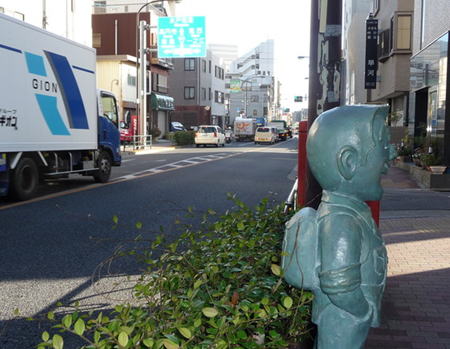 道路の到る所に“こち亀”の像が並ぶ、これは両津さんの銅像